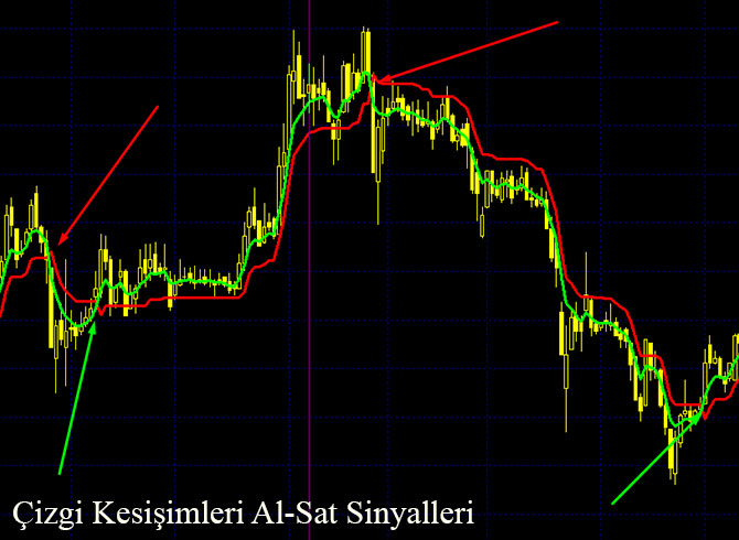 İndikatör çizgisi ile hareketli fiyat ortalamasının çizgisinin kesiştiği noktalar al-sat sinyalleri olarak değerlendirilir. Kırmızı çizginin yeşil çizgiyi aşağı yönlü kestiği noktalar al sinyali , yukarı yönlü kestiği noktalar ise sat sinyali olarak algılanır.